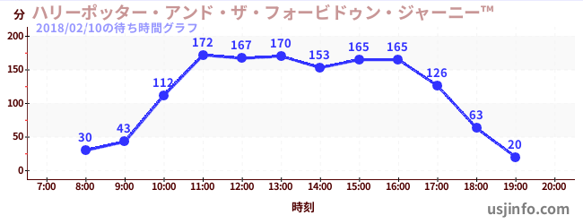 • ハリーポッター・アンド・ザ・フォービドゥン・ジャーニー™$B$N(B2018年02月10日の待ち時間