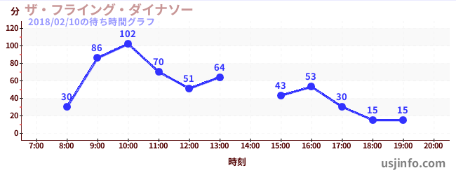 • ザ・フライング・ダイナソー$B$N(B2018年02月10日の待ち時間