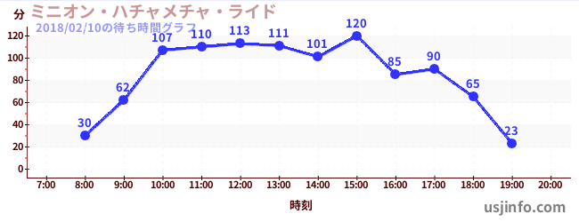 • ミニオン・ハチャメチャ・ライド$B$N(B2018年02月10日の待ち時間