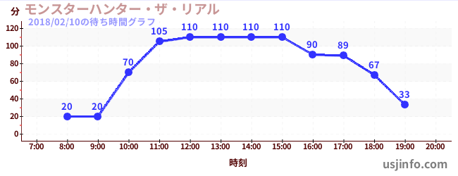 • モンスターハンター・ザ・リアル$B$N(B2018年02月10日の待ち時間