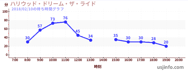 • ハリウッド・ドリーム・ザ・ライド$B$N(B2018年02月10日の待ち時間
