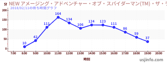 • NEW アメージング・アドベンチャー・オブ・スパイダーマン(TM)・ザ・ライド 4K3D$B$N(B2018年02月11日の待ち時間