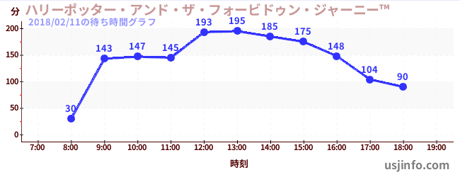 • ハリーポッター・アンド・ザ・フォービドゥン・ジャーニー™$B$N(B2018年02月11日の待ち時間