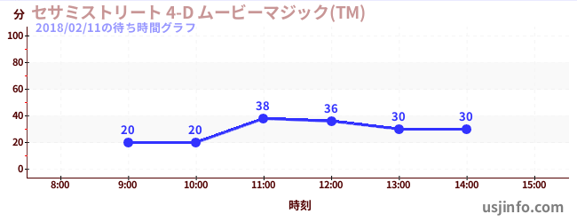 • セサミストリート 4-D ムービーマジック(TM)$B$N(B2018年02月11日の待ち時間