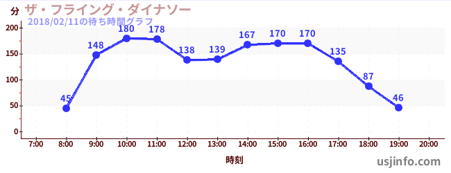 • ザ・フライング・ダイナソー$B$N(B2018年02月11日の待ち時間