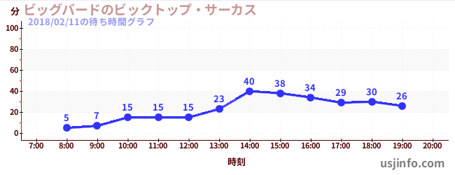 • ビッグバードのビックトップ・サーカス$B$N(B2018年02月11日の待ち時間