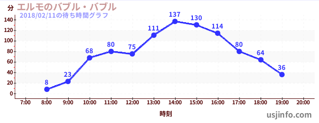 • エルモのバブル・バブル$B$N(B2018年02月11日の待ち時間