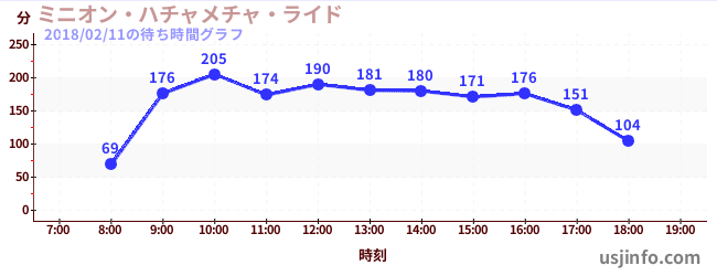 • ミニオン・ハチャメチャ・ライド$B$N(B2018年02月11日の待ち時間