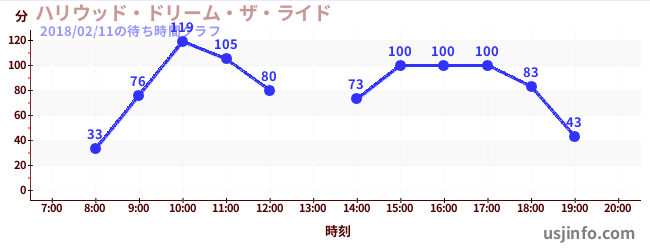 • ハリウッド・ドリーム・ザ・ライド$B$N(B2018年02月11日の待ち時間