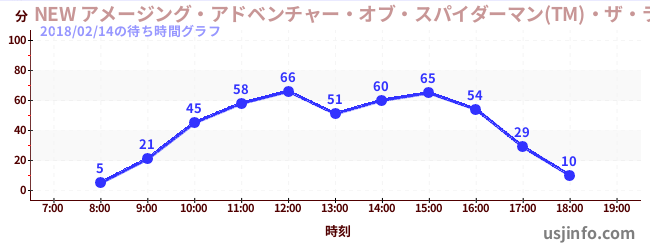 • NEW アメージング・アドベンチャー・オブ・スパイダーマン(TM)・ザ・ライド 4K3D$B$N(B2018年02月14日の待ち時間
