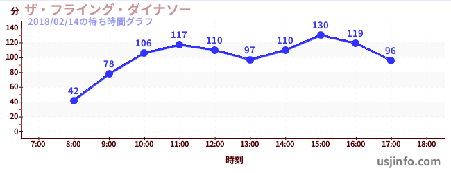 • ザ・フライング・ダイナソー$B$N(B2018年02月14日の待ち時間