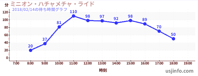 • ミニオン・ハチャメチャ・ライド$B$N(B2018年02月14日の待ち時間