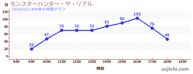 • モンスターハンター・ザ・リアル$B$N(B2018年02月14日の待ち時間