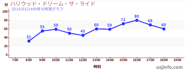 • ハリウッド・ドリーム・ザ・ライド$B$N(B2018年02月14日の待ち時間