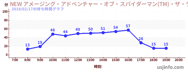 • NEW アメージング・アドベンチャー・オブ・スパイダーマン(TM)・ザ・ライド 4K3D$B$N(B2018年02月17日の待ち時間