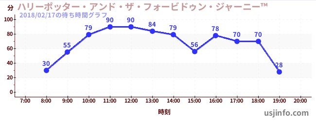 • ハリーポッター・アンド・ザ・フォービドゥン・ジャーニー™$B$N(B2018年02月17日の待ち時間