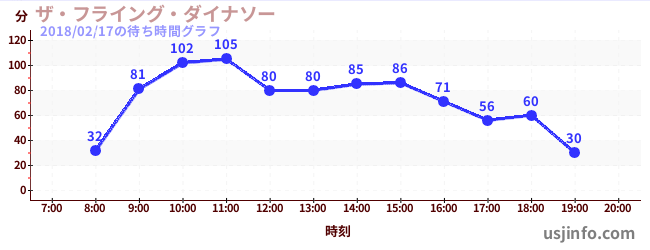 • ザ・フライング・ダイナソー$B$N(B2018年02月17日の待ち時間