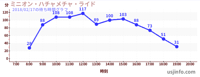 • ミニオン・ハチャメチャ・ライド$B$N(B2018年02月17日の待ち時間
