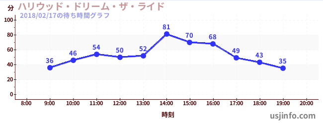 • ハリウッド・ドリーム・ザ・ライド$B$N(B2018年02月17日の待ち時間