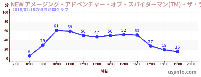 • NEW アメージング・アドベンチャー・オブ・スパイダーマン(TM)・ザ・ライド 4K3D$B$N(B2018年02月18日の待ち時間