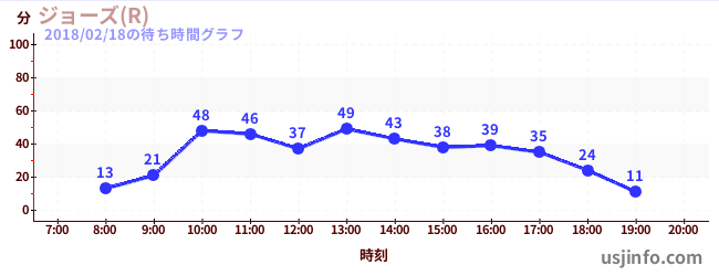 • ジョーズ(R)$B$N(B2018年02月18日の待ち時間