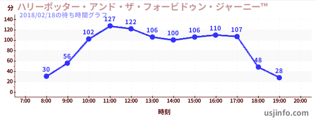 • ハリーポッター・アンド・ザ・フォービドゥン・ジャーニー™$B$N(B2018年02月18日の待ち時間