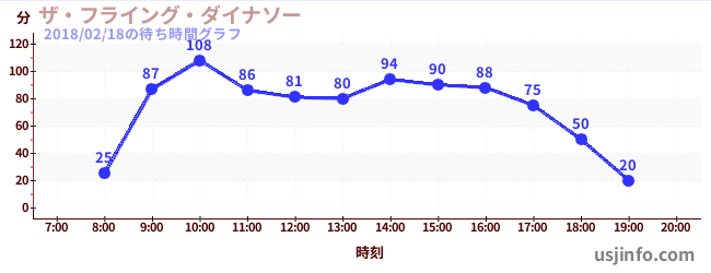 • ザ・フライング・ダイナソー$B$N(B2018年02月18日の待ち時間