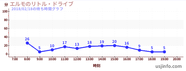 • エルモのリトル・ドライブ$B$N(B2018年02月18日の待ち時間