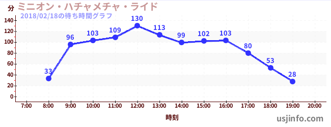 • ミニオン・ハチャメチャ・ライド$B$N(B2018年02月18日の待ち時間