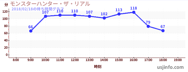 • モンスターハンター・ザ・リアル$B$N(B2018年02月18日の待ち時間