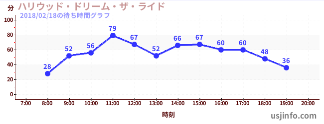 • ハリウッド・ドリーム・ザ・ライド$B$N(B2018年02月18日の待ち時間