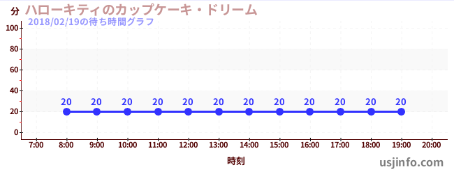 • ハローキティのカップケーキ・ドリーム$B$N(B2018年02月19日の待ち時間