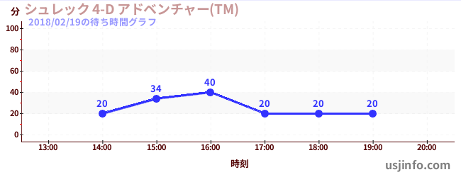 • シュレック 4-D アドベンチャー(TM)$B$N(B2018年02月19日の待ち時間