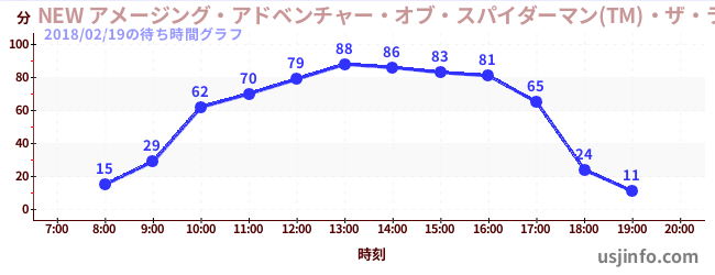 • NEW アメージング・アドベンチャー・オブ・スパイダーマン(TM)・ザ・ライド 4K3D$B$N(B2018年02月19日の待ち時間
