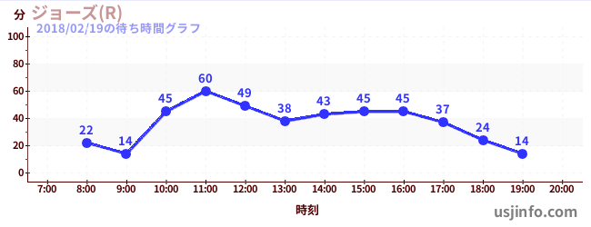 • ジョーズ(R)$B$N(B2018年02月19日の待ち時間