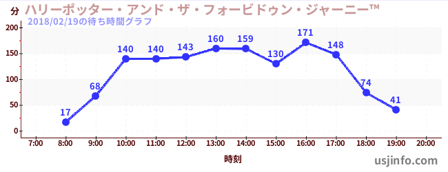 • ハリーポッター・アンド・ザ・フォービドゥン・ジャーニー™$B$N(B2018年02月19日の待ち時間