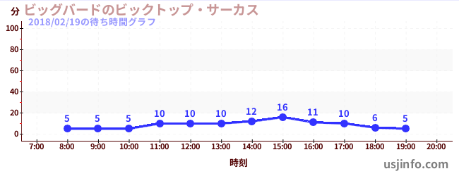• ビッグバードのビックトップ・サーカス$B$N(B2018年02月19日の待ち時間