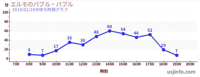 • エルモのバブル・バブル$B$N(B2018年02月19日の待ち時間