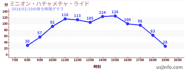 • ミニオン・ハチャメチャ・ライド$B$N(B2018年02月19日の待ち時間