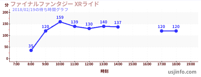 • ファイナルファンタジー XRライド$B$N(B2018年02月19日の待ち時間