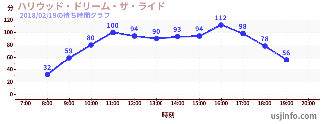 • ハリウッド・ドリーム・ザ・ライド$B$N(B2018年02月19日の待ち時間