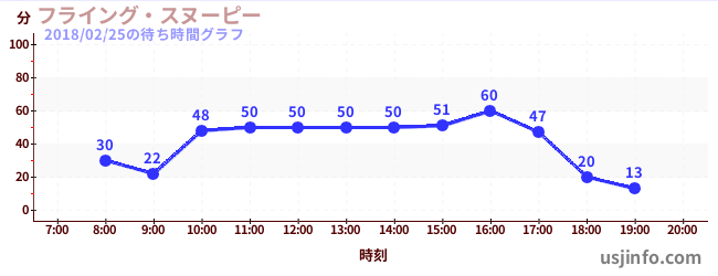 • フライング・スヌーピー$B$N(B2018年02月25日の待ち時間