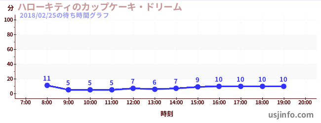 • ハローキティのカップケーキ・ドリーム$B$N(B2018年02月25日の待ち時間