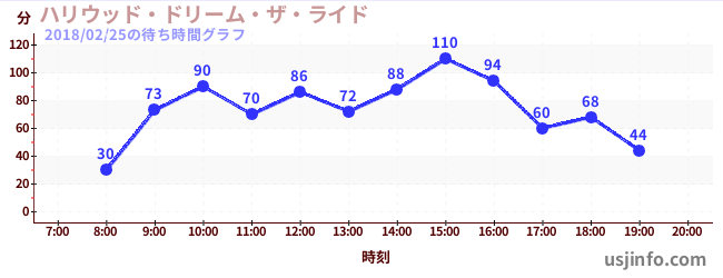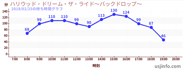 • ハリウッド・ドリーム・ザ・ライド〜バックドロップ〜$B$N(B2018年02月25日の待ち時間