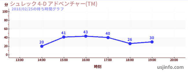 • シュレック 4-D アドベンチャー(TM)$B$N(B2018年02月25日の待ち時間