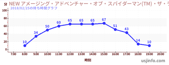 • NEW アメージング・アドベンチャー・オブ・スパイダーマン(TM)・ザ・ライド 4K3D$B$N(B2018年02月25日の待ち時間