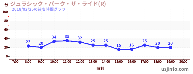 • ジュラシック・パーク・ザ・ライド(R)$B$N(B2018年02月25日の待ち時間