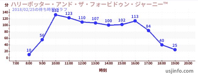 • ハリーポッター・アンド・ザ・フォービドゥン・ジャーニー™$B$N(B2018年02月25日の待ち時間