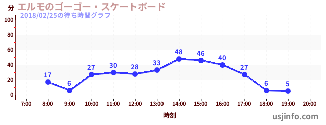 • エルモのゴーゴー・スケートボード$B$N(B2018年02月25日の待ち時間