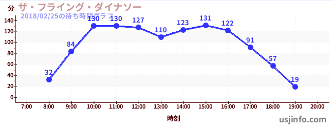 • ザ・フライング・ダイナソー$B$N(B2018年02月25日の待ち時間
